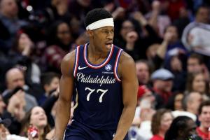 此役,76人探花秀埃奇库姆出战41分55秒,投篮16中7,三分5中1,罚球5中4,得到19分11篮板1助攻1抢断。